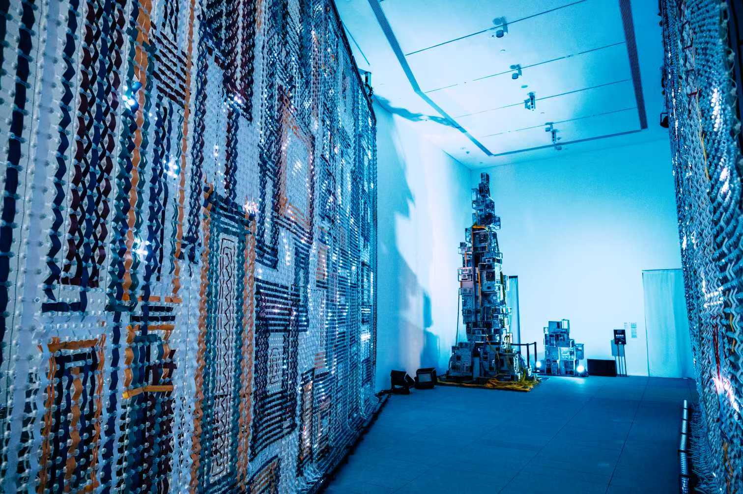 该展位于国际著名建筑设计师安藤忠雄 设计的启皓艺术馆,由费俊与王乃一两位老师布展,以在全球范围内探讨人类 、科技与未来的深刻议题为主旨。
